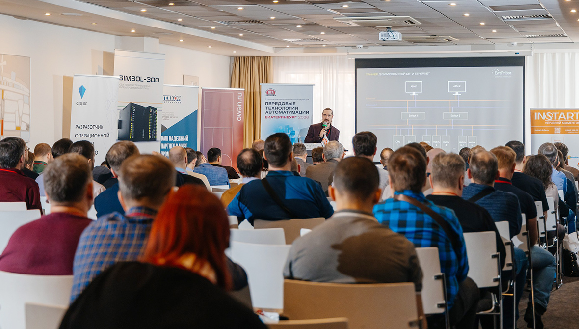 ООО «НПЦ «Европрибор» приняло участие в конференции «Передовые Технологии Автоматизации – 2026» с докладом «Simbol-300 — промышленный контроллер нового поколения для высоконадёжных и отказоустойчивых систем».
